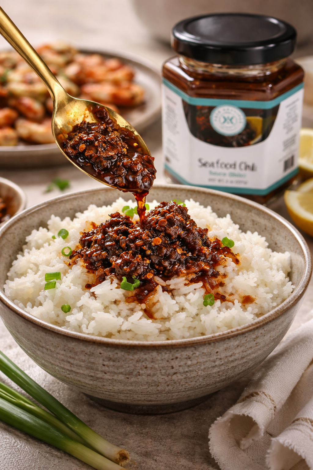 Slow cooked with dried shrimp, anchovies, onions, and warming spices, this traditional Ghanaian chili oil delivers bold heat with deep smoky richness.